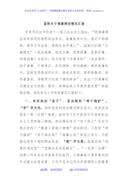 / 监狱关于清廉建设情况汇报
