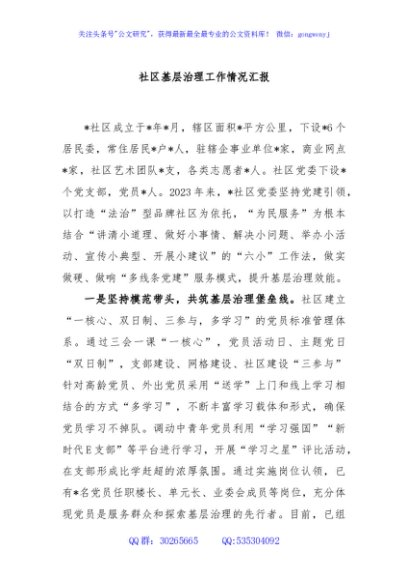 / 社区基层治理工作情况汇报