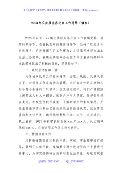 / 2023年公共服务办公室工作总结(镇乡)