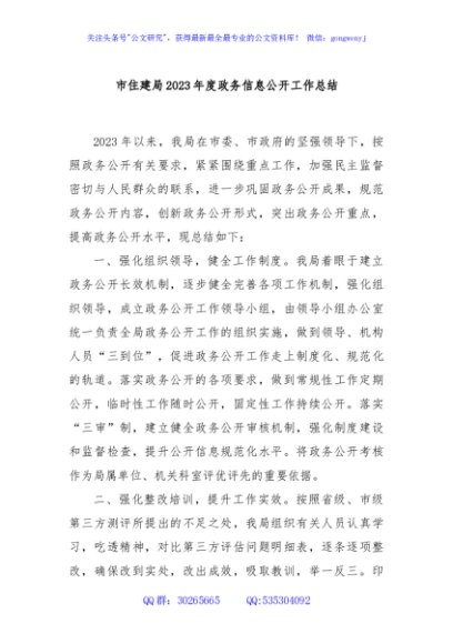 / 市住建局2023年度政务信息公开工作总结