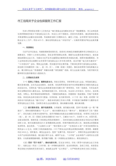 / 市工信局关于企业包保服务工作汇报