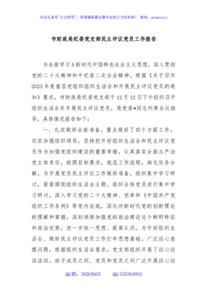/ 市财政局纪委党支部民主评议党员工作报告