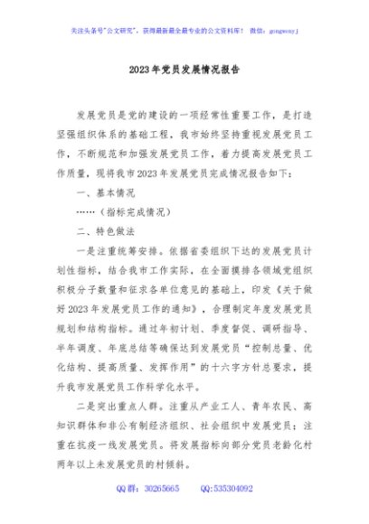 / 2023年党员发展情况报告