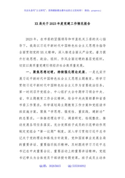 / XX局关于2023年度党建工作情况报告