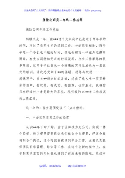 保险公司员工年终工作总结