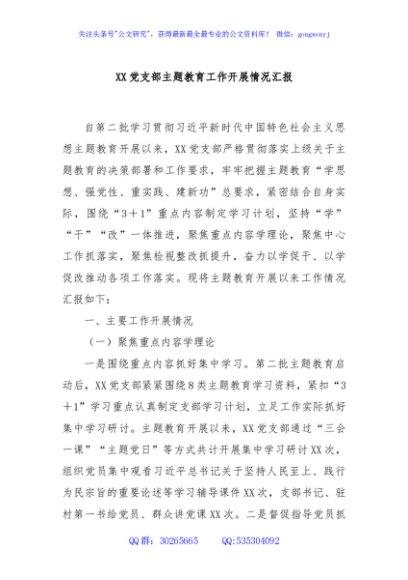 / XX党支部主题教育工作开展情况汇报