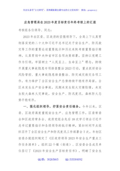 / 应急管理局在2023年度目标责任年终考核上的汇报