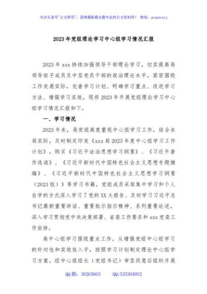 / 2023年党组理论学习中心组学习情况汇报