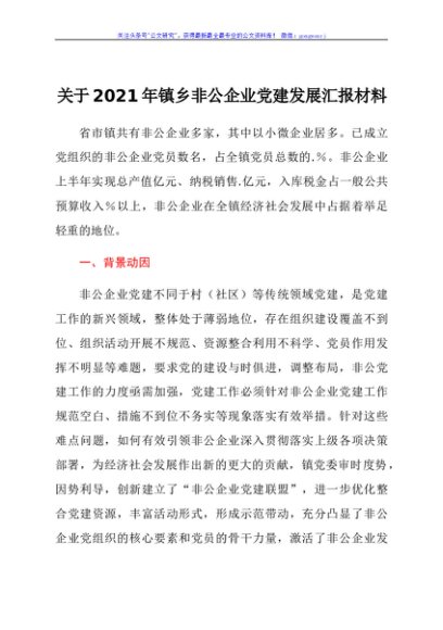 / 关于2021年镇乡非公企业党建发展汇报材料