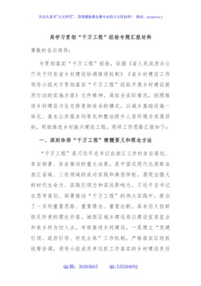 / 局学习贯彻“千万工程”经验专题汇报材料