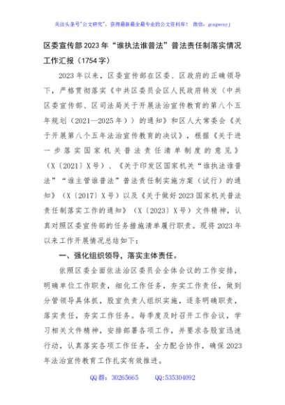 / 区委宣传部2023年“谁执法谁普法”普法责任制落实情况工作汇报