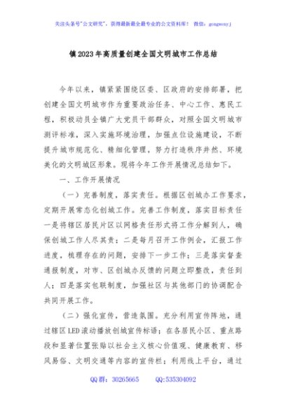 / 镇2023年高质量创建全国文明城市工作总结