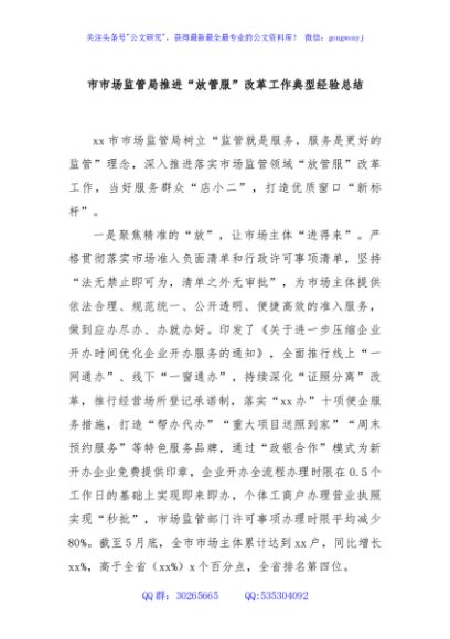 / 市市场监管局推进“放管服”改革工作典型经验总结