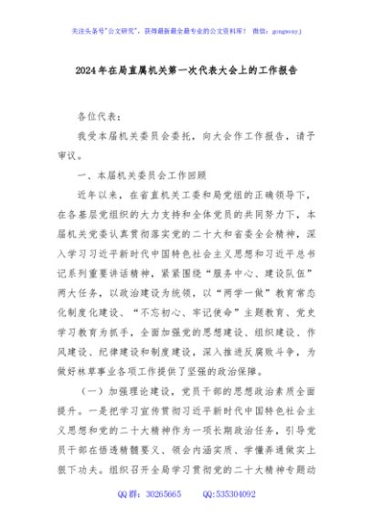 / 2024年在局直属机关第一次代表大会上的工作报告