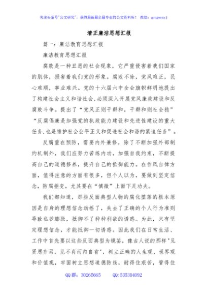 / 清正廉洁思想汇报