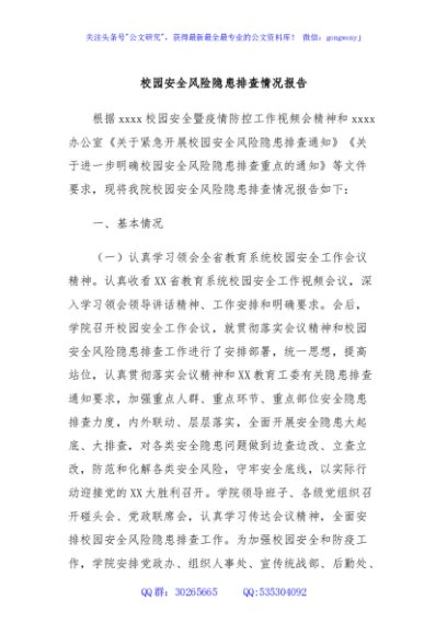 未生成预览图,长按二维码添加 校园安全风险隐患排查情况报告 - 公文研究