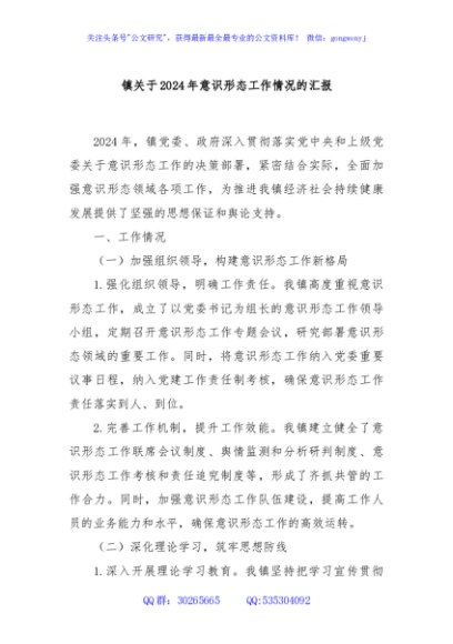 / 镇关于2024年意识形态工作情况的汇报