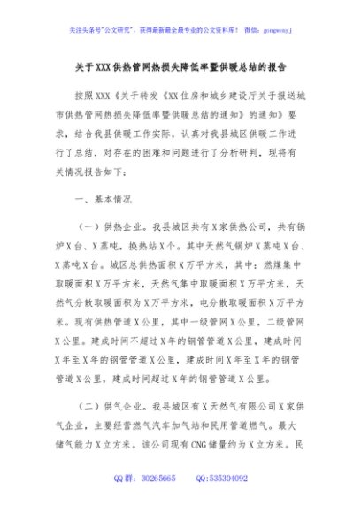 / 关于XXX供热管网热损失降低率暨供暖总结的报告