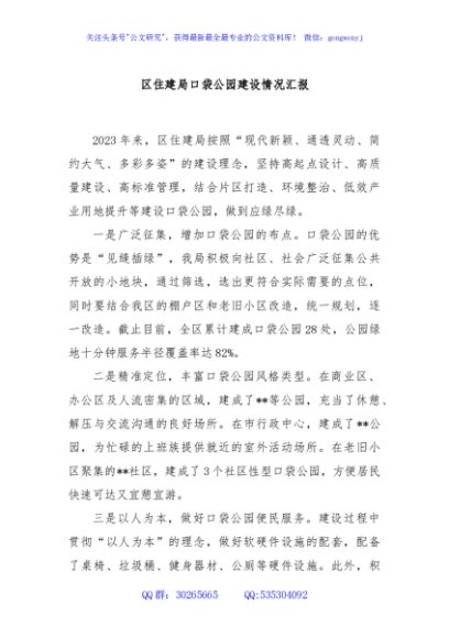 区住建局口袋公园建设情况汇报