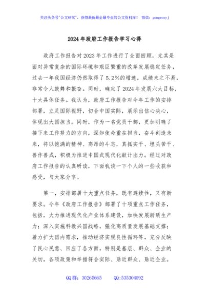 / 2024年政府工作报告学习心得