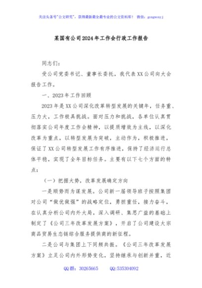 / 某国有公司2024年工作会行政工作报告