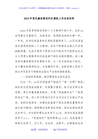 / 2023年党风廉政建设和反腐败工作总结材料.