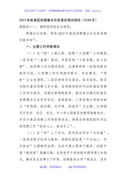 / 2023年度基层党建重点任务落实情况报告