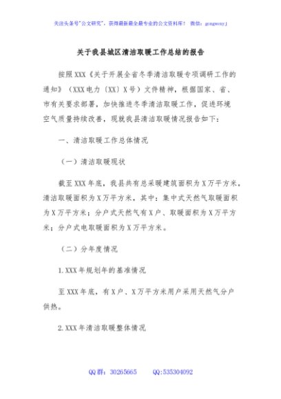 / 关于我县城区清洁取暖工作总结的报告