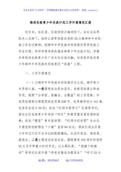 / 推进各族青少年交流计划工作开展情况汇报