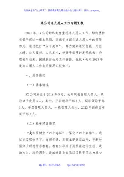 / 某公司选人用人工作专题汇报