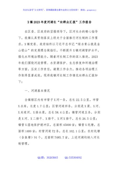 / X镇2023年度河湖长“向群众汇报”工作报告
