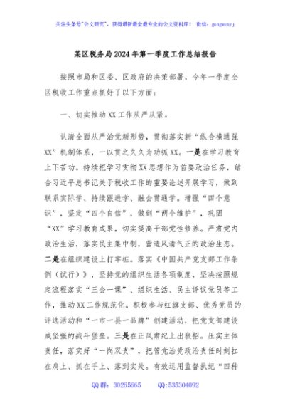 / 某区税务局2024年第一季度工作总结报告