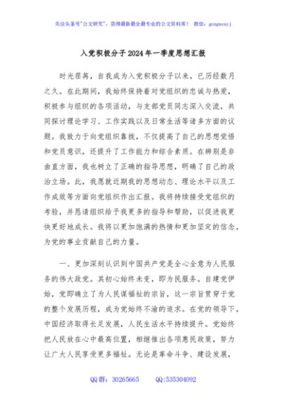 / 入党积极分子2024年一季度思想汇报