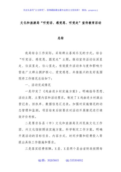 / 文化和旅游局“听党话、感党恩、听党走”宣传教育活动总结