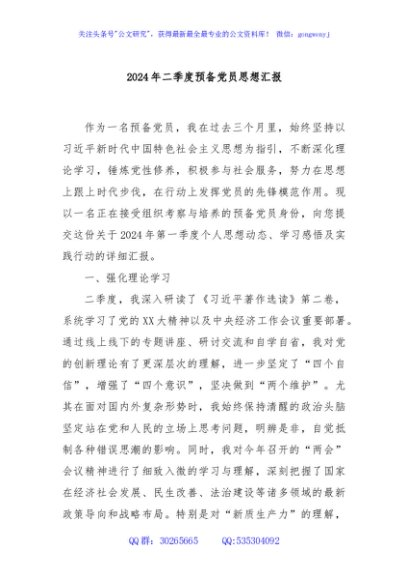 / 2024年二季度预备党员思想汇报