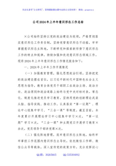 / 公司2024年上半年意识形态工作总结