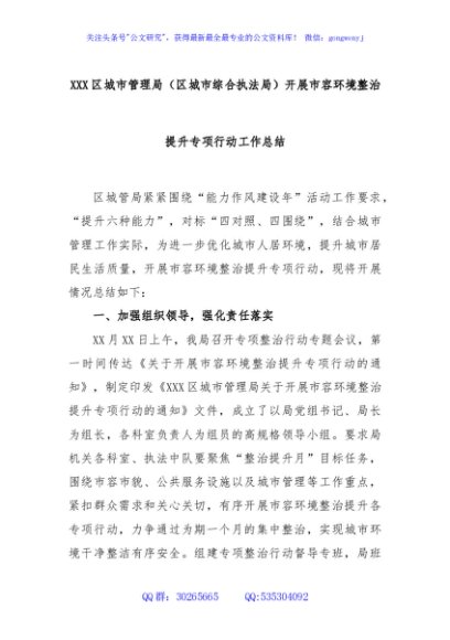 / XXX区城市管理局(区城市综合执法局)开展市容环境整治提升专项行动工作总结