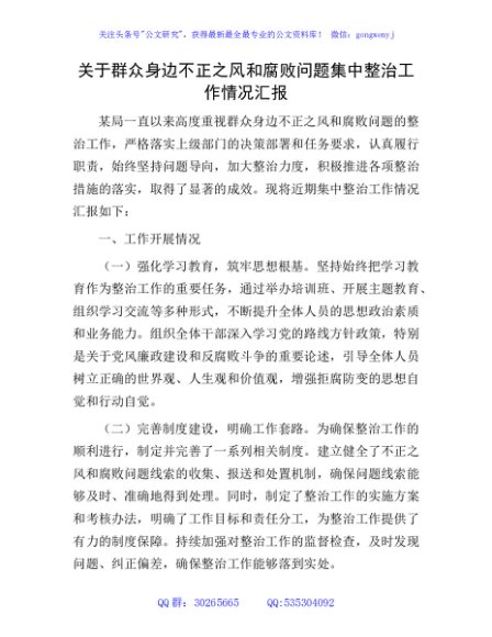 / 群众身边不正之风和腐败问题集中整治工作情况总结汇报