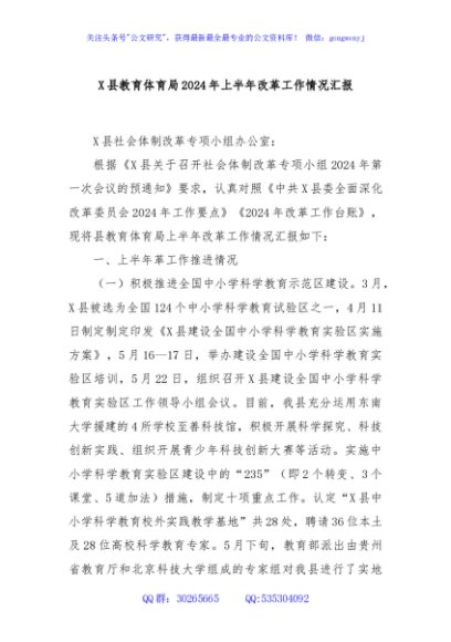 / X县教育体育局2024年上半年改革工作情况汇报