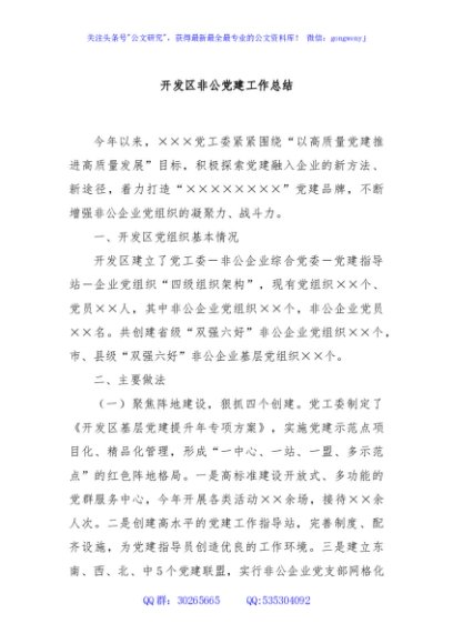 / 开发区非公党建工作总结