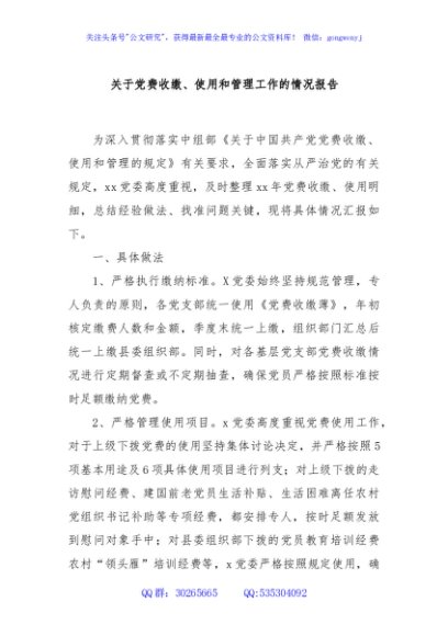 / 关于党费收缴、使用和管理工作的情况报告