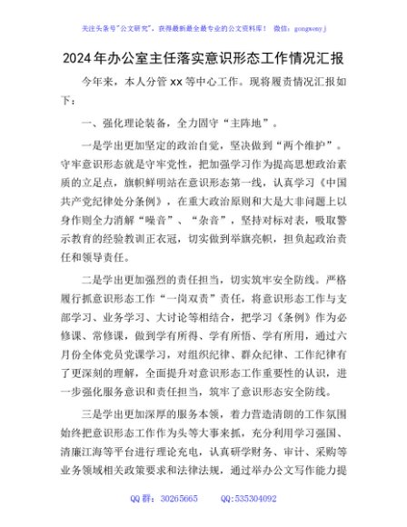 / 2024年办公室主任落实意识形态工作总结汇报