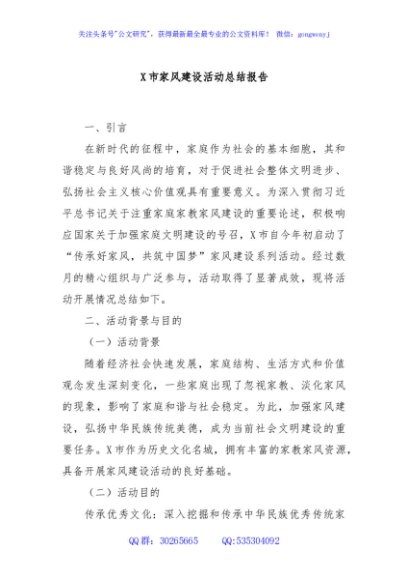 X市家风建设活动总结报告