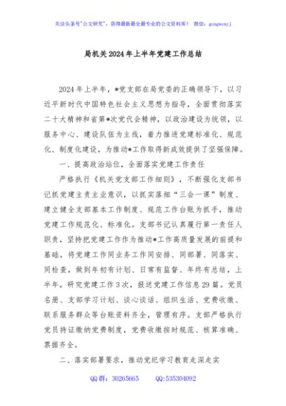 / 局机关2024年上半年党建工作总结