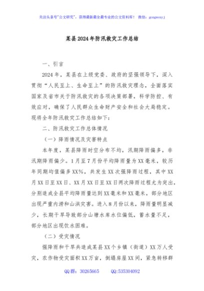 / 某县2024年防汛救灾工作总结