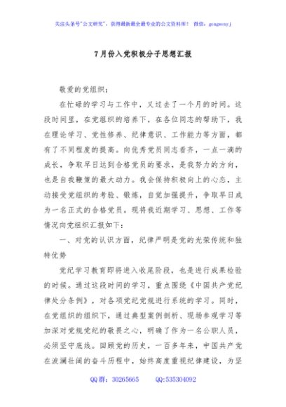/ 7月份入党积极分子思想汇报