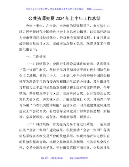 / 公共资源交易2024年上半年工作总结