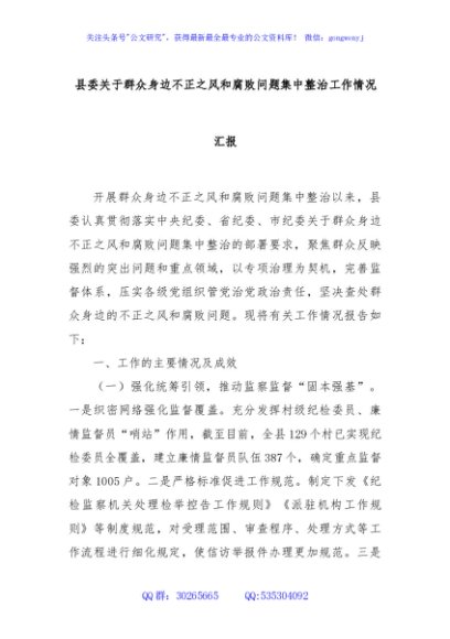 / 县委关于群众身边不正之风和腐败问题集中整治工作情况汇报