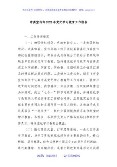 / 市委宣传部2024年党纪学习教育工作报告