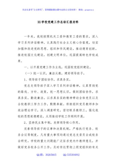 / XX学校党建工作总结汇报材料